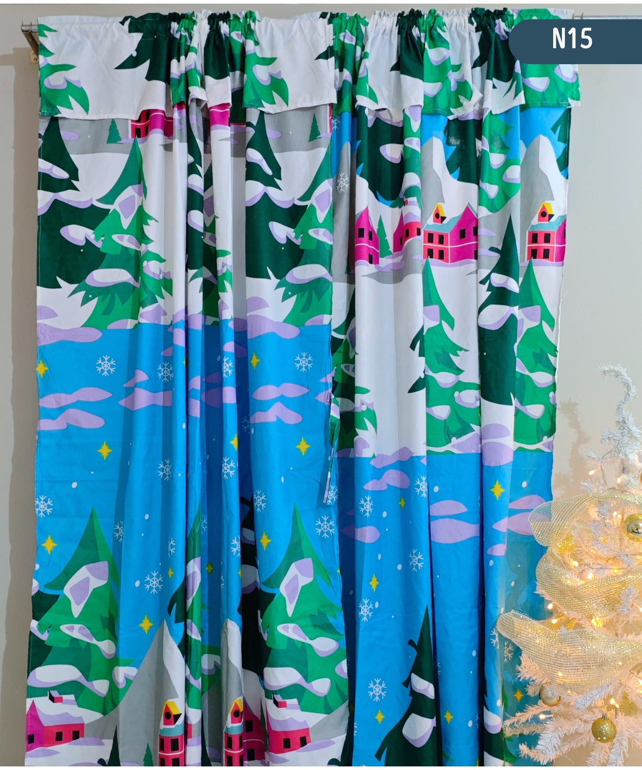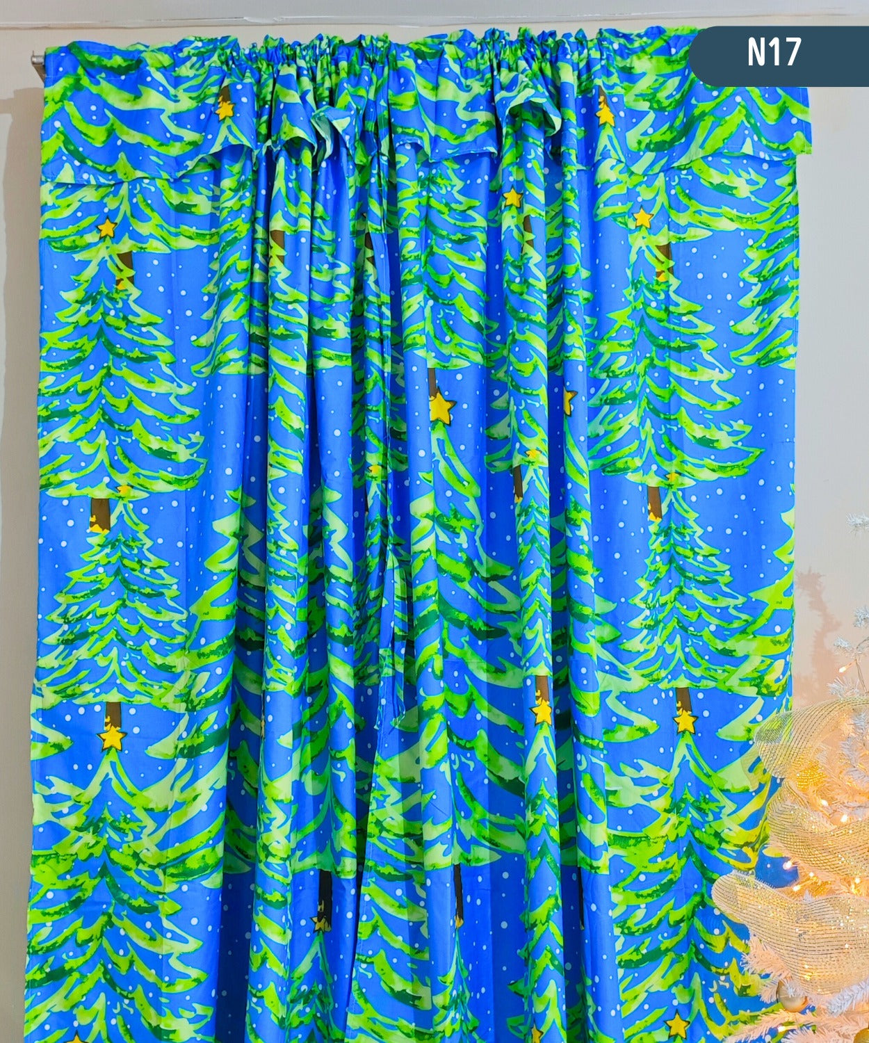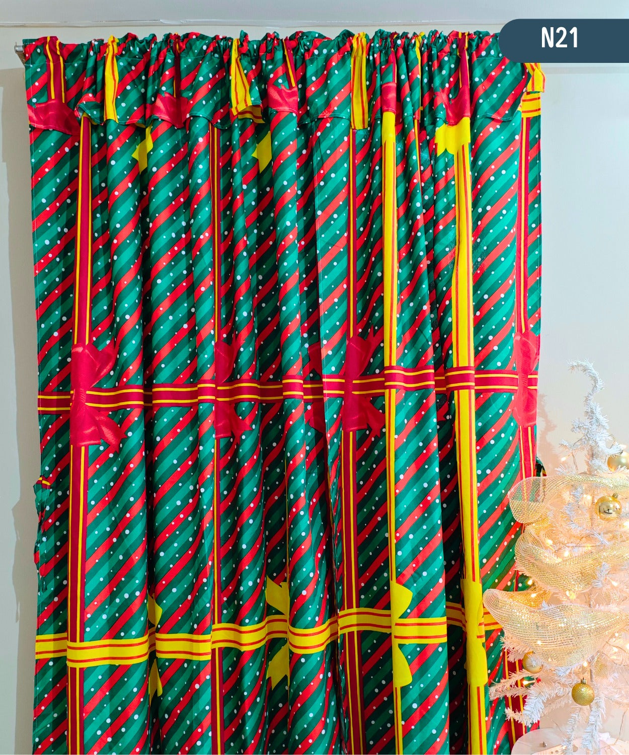 Cortina Yacard ideal para tu hogar en esta época navideña, sala de estar, habitaciones u otros. Excelentes para decorar tu hogar y retener la entrada de luz de manera moderada