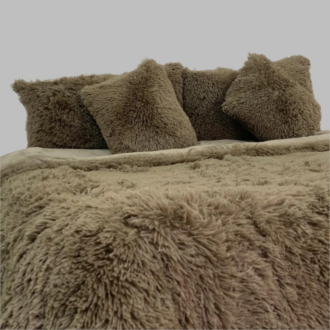 Cubrelecho Piel Durazno Pelo Largo- Cafe