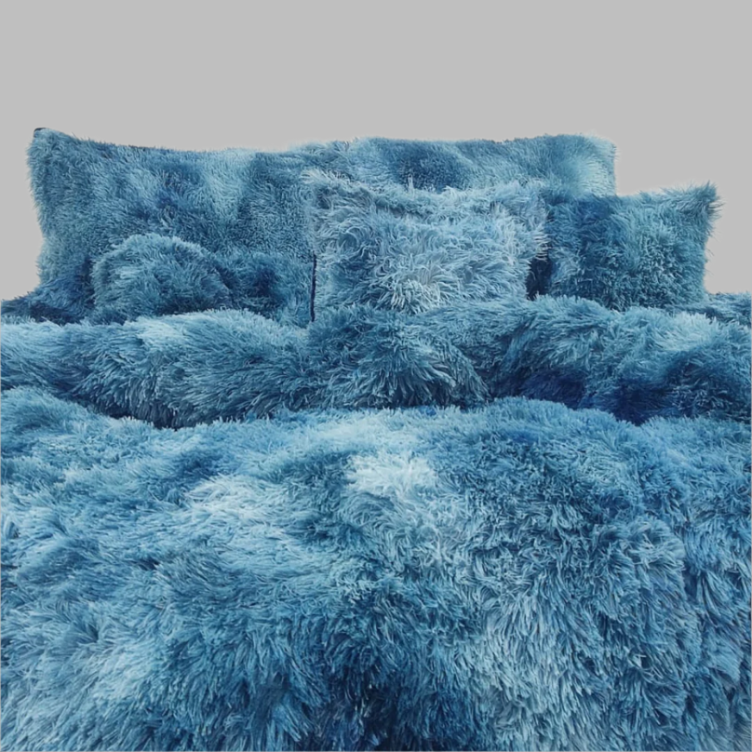 Cubrelecho Piel Durazno Pelo Largo- Degrade En Azul