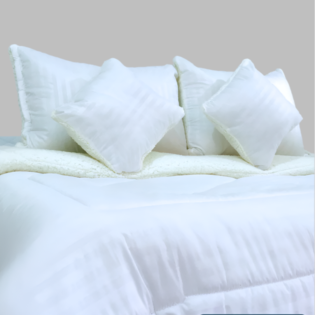 Elaborado en Microfibra, material de alta calidad y suave al tacto. Ligero con relleno Siliconado y parte interna Ovejera.