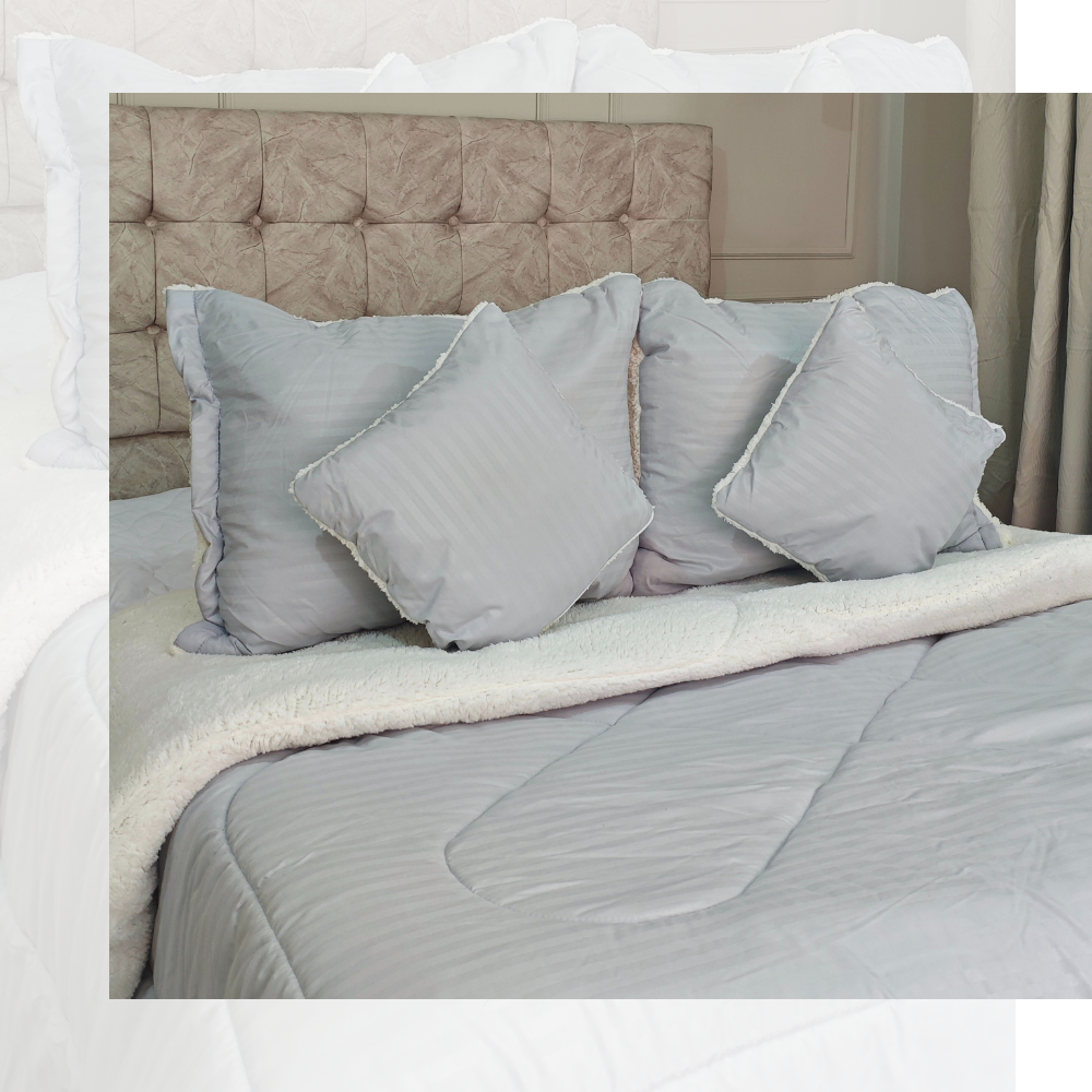 Elaborado en Microfibra, material de alta calidad y suave al tacto. Ligero con relleno Siliconado y parte interna Ovejera.
